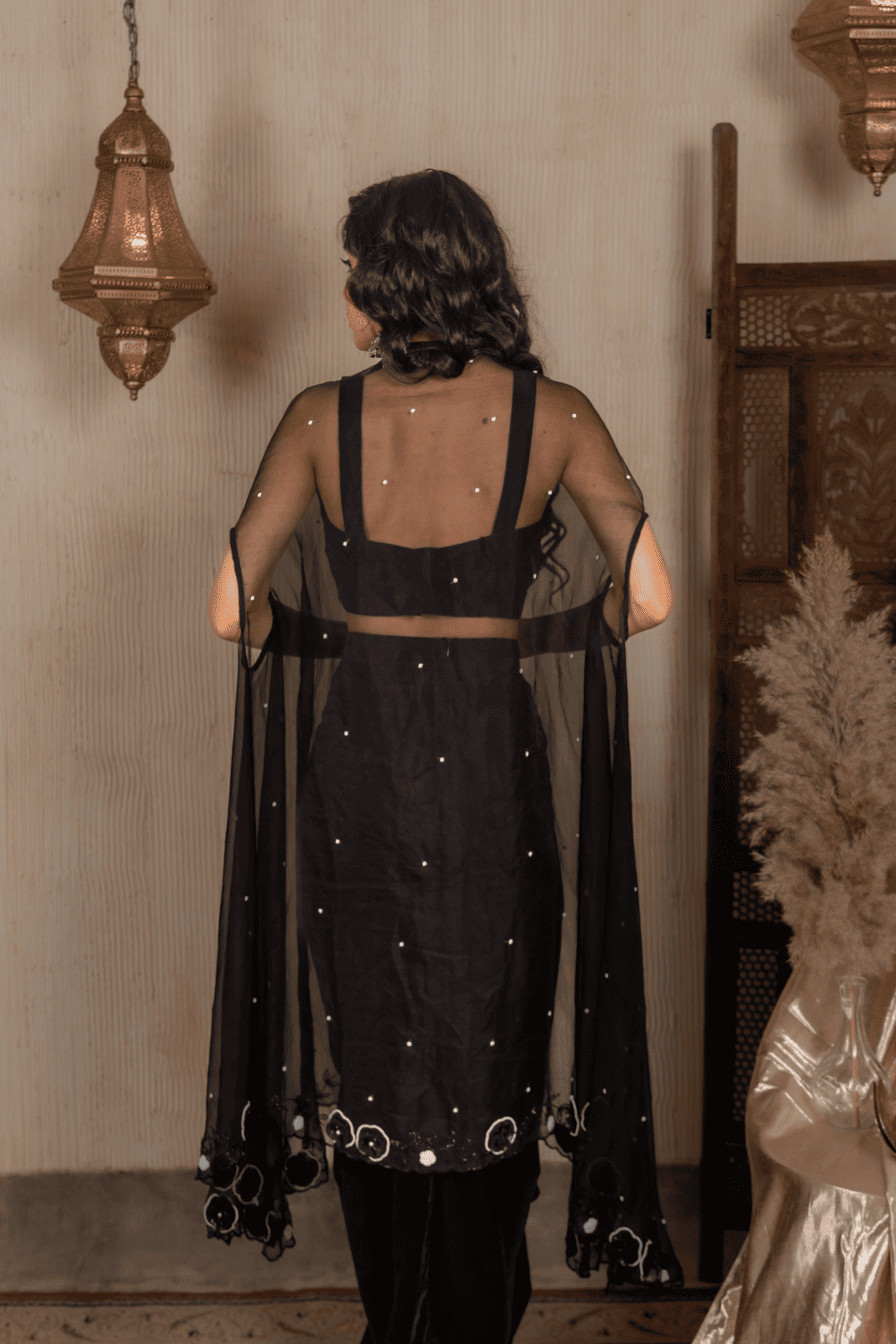 Whether you’re attending a high-profile wedding or a festive gala, the Chaandni Velvet Drape Set ensures you exude elegance, grace, and fashion-forward charm.