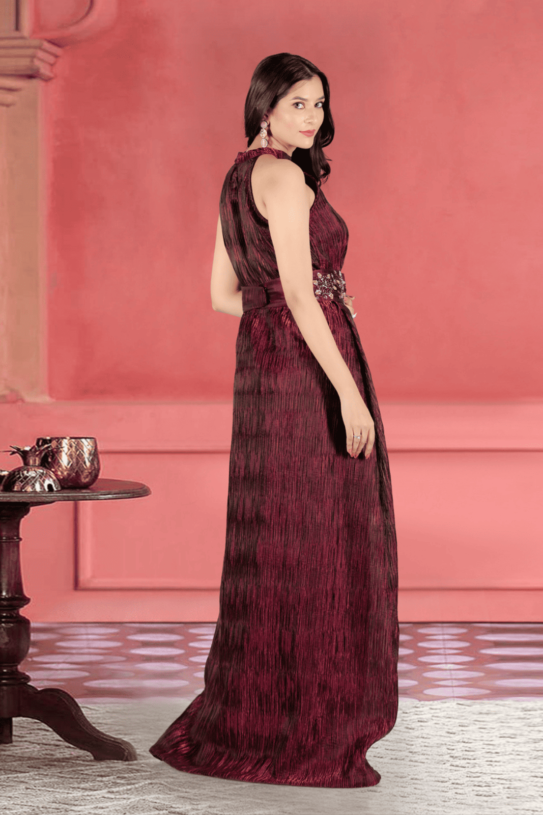 Exude timeless elegance and red-carpet sophistication in our Wine Crush Evening Gown, a luxurious blend of modern glamour and delicate femininity. Crafted from premium crushed organza, this floor-length gown is perfect for pageants, cocktail parties, red carpet events, and formal evening functions.